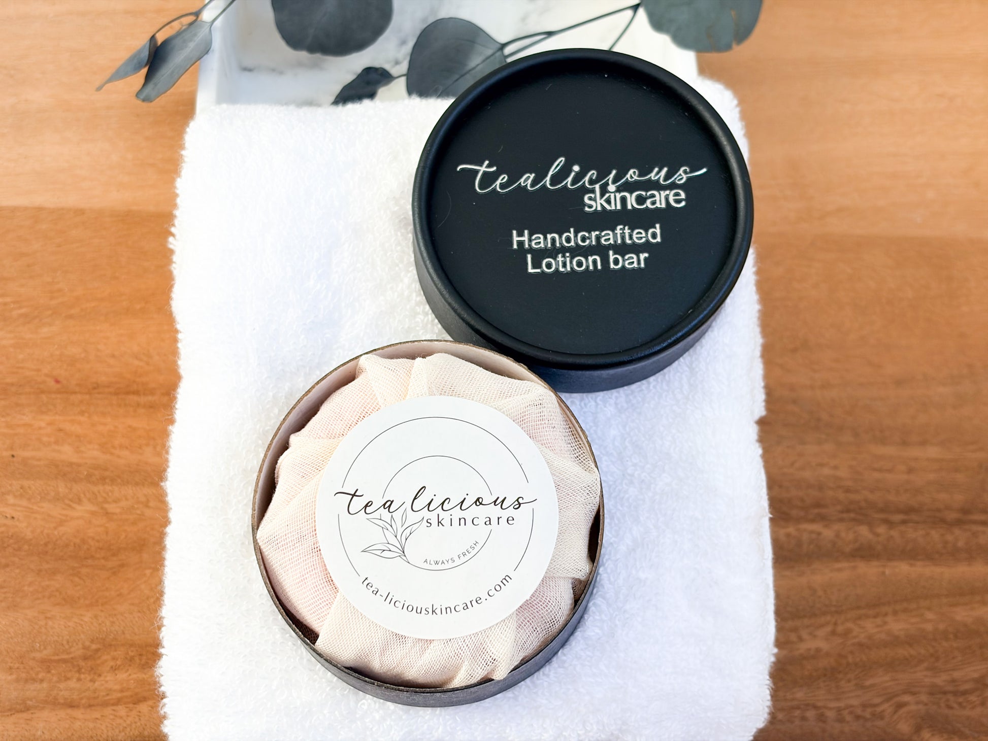 The Haugh-Tea Cocoa Butter & Cashmere Solid Lotion Bar from Tea-licious Skincare is a luxurious, comforting fragrance, blending the rich, chocolatey warmth of cocoa butter with the soft, musky elegance of cashmere. This sophisticated aroma evokes a cozy, indulgent embrace, lingering delicately on the skin.