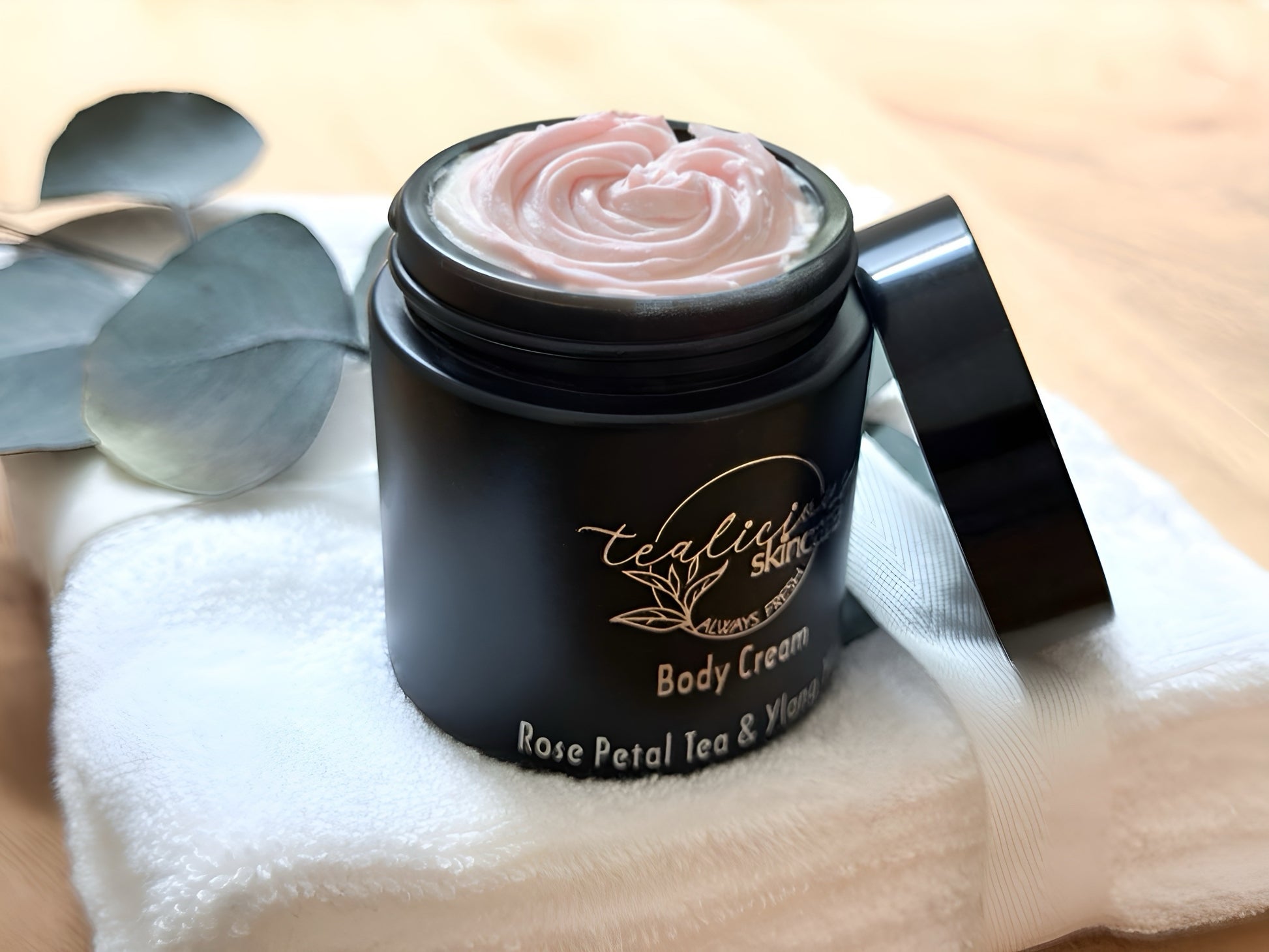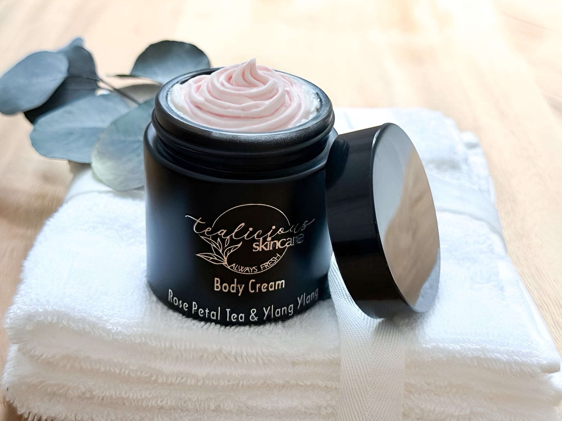 Tea-licious Rose Petal Tea and Ylang Ylang Organic Body Cream: Meticulously handcrafted in small batches, this premium, chemical-free body cream is a cornerstone of eco-friendly skincare. Its rich yet lightweight texture absorbs seamlessly, delivering deep hydration while restoring the skin’s natural moisture balance. Infused with organic ingredients, it nurtures the skin, leaving it soft, smooth, and radiant without harmful additives. By prioritizing sustainable beauty practices, Tea-licious ensures an environmentally conscious product that supports both skin health and the planet.