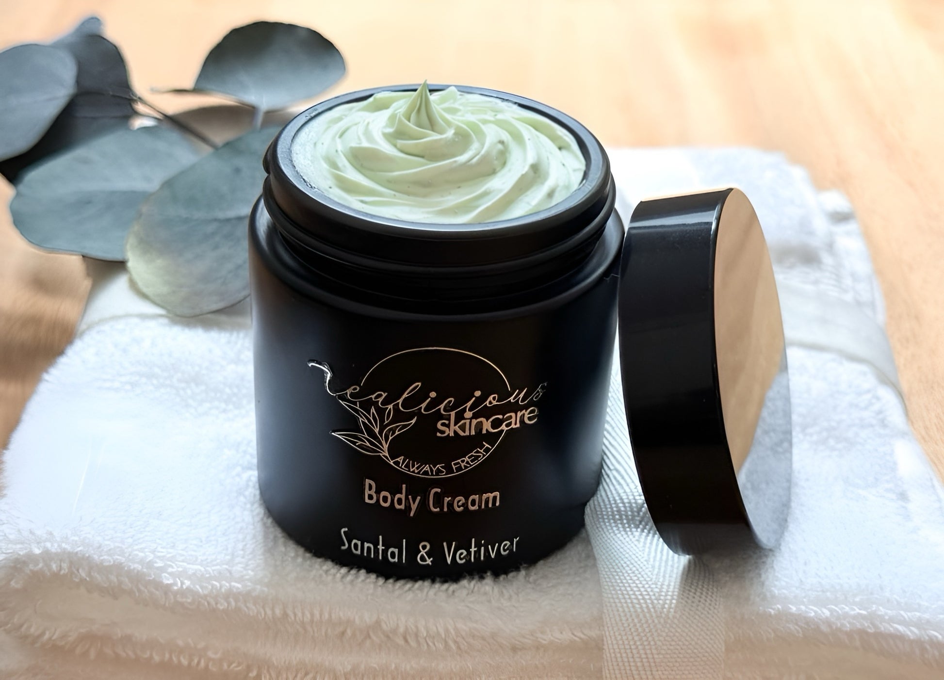 The blend of santal’s velvety, woody warmth and vetiver’s smoky, earthy undertones creates a luxurious, grounding fragrance with a touch of creamy sophistication. This balanced, long-lasting scent promotes tranquility and warmth, perfectly complementing the cream’s nourishing properties for a soothing, eco-conscious self-care ritual.
