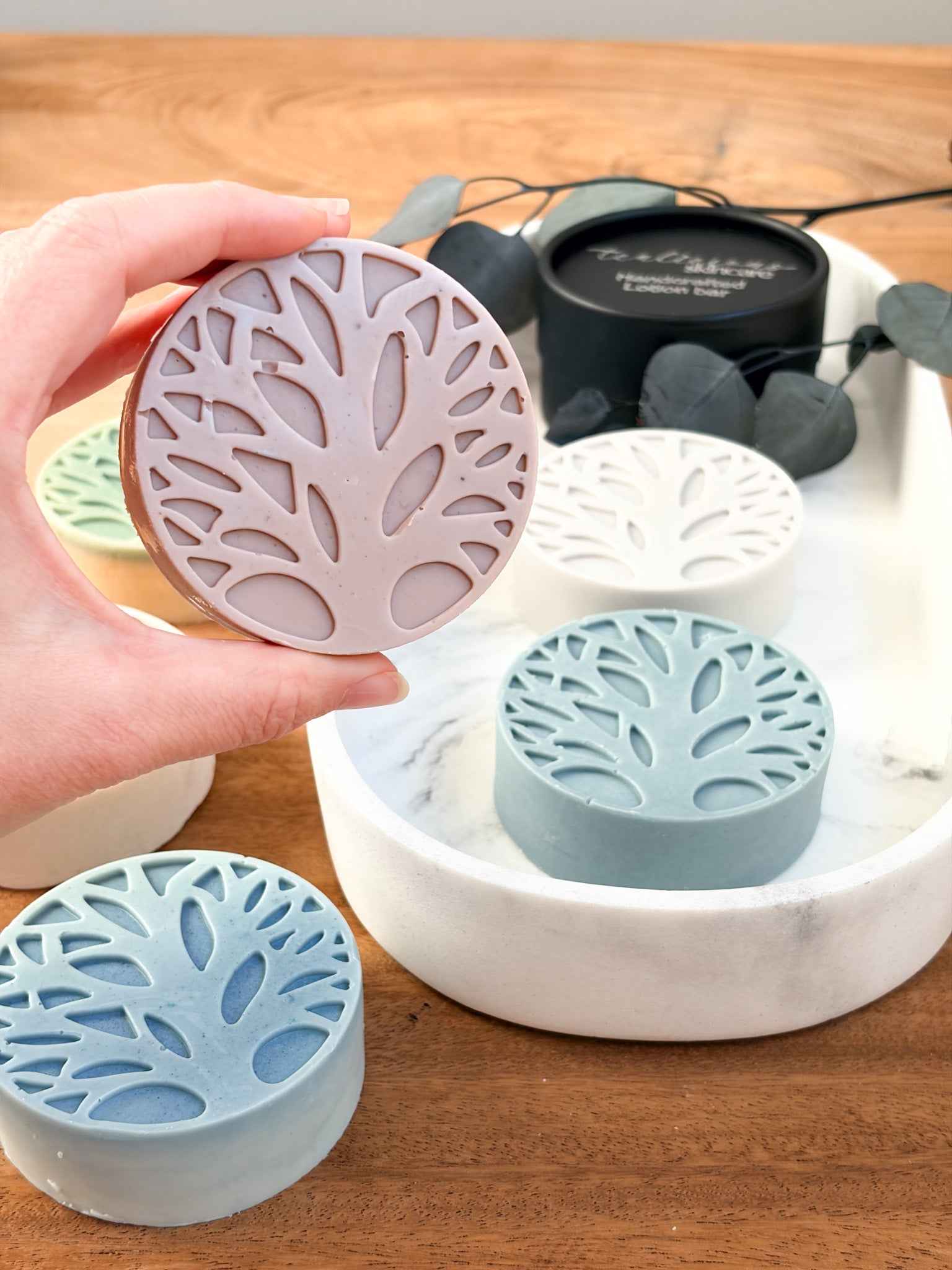 • Rub the bar directly onto your skin, gently glide the bar over the area you want to moisturize.